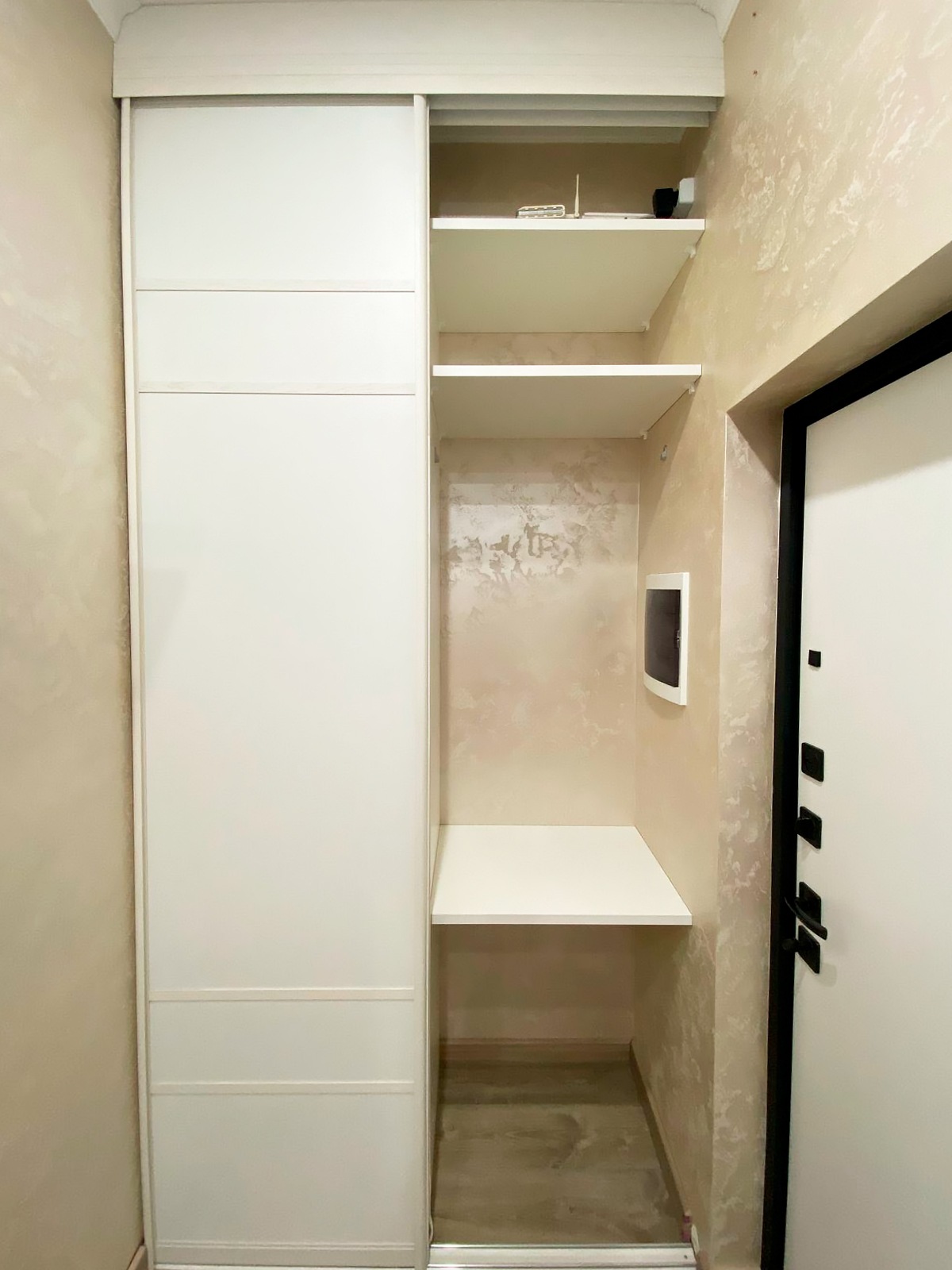 Проект этого шкафа-купе разработан для небольшой прихожей, где важна каждая деталь и каждый сантиметр пространства. Шкаф встраиваемый, лаконичный и компактный, идеально вписывается в нишу и не загромождает помещение, при этом оставаясь функциональным.